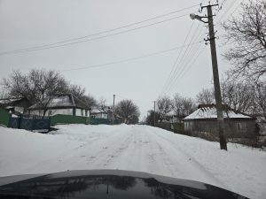 We zijn ‘s ochtends nog in Smila en gedenken dat 4 jaar geleden de invasie en de oorlog begon. Rond de middag steken we bij Tsjerkasy de Dnepr over en bezoeken nog een oorlogsweduwe om hulp te brengen. We waren hier vaker. Op een verdrietige manier ervaren we echter wat er gebeurt als Koning Alcohol intrede doet in een leven, en men daarin vlucht om het leed te vergeten. Bedrukt gaan we hierna op pad naar Merefa, in het Charkov gebied. Nog 550 km te gaan. De, toch al matige, wegen zijn op diverse plekken flink beschadigd door de strenge vorst. Eerst is er nog lichte dooi, later zakt de temperatuur rond nul en het gaat licht sneeuwen. Laat in de avond arriveren we in Merefa. Dit is onze uitvalsbasis voor de komende drie dagen. Inmiddels is sinds donderdag 3300 km afgelegd. We eten en bespreken de planning. We bidden samen hiervoor. Dan is het bedtijd, voor een korte nacht.