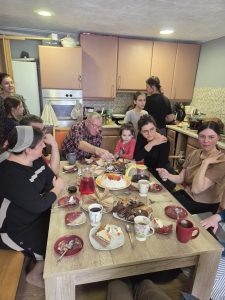 Met Leslya, die in Oostenrijk woont en met ons meereist als tolk voor Heleen bezochten we haar familie. Wat een emotioneel weerzien! Na een lange scheiding: thuis. Blijde opa, ouders en zusjes zag ze zondag al in Smila. Maar haar broers omhelsden hun oudste zus o zo hartelijk. Allen weer om de keukentafel, weer samen! We hoorden van nabij hoe door hen de oorlog werd en wordt ervaren. De pijn die gevoeld wordt, de worsteling om er door heen te komen. De vader is zwak en ziekelijk. Er komt veel op de schouders van de moeder. Het valt op hoe rondom veel huisjes onbewoond zijn. Alles oogt vredig, maar daaronder liggen diepe wonden en zorgen. Bidt voor hen.