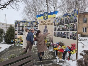 Dan neemt Leslya ons mee naar het centrum van het stadje. Bij de muziekschool, waar ze vroeger les kreeg staan vier grote borden met inmiddels 150 foto’ s en namen. De gesneuvelden uit dit plattelandsdorp (en dan zijn er nog de vermisten). Leslya wijst ze aan: die zat bij mij in de klas, en hij… en hij. En deze zat in een andere klas, en hij… En deze, dat was onze buurman, hij sneuvelde al in 2015. Hier op het “vredige” platteland krijgt oorlog een gezicht. De pijn wordt tastbaar. Morgen, 24 februari, was het vier jaar geleden, dat de inval in Oekraïne begon.