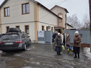 Startpunt van elke trip. Kerk in Merefa. Laden. We bidden samen. En gaan… in hoop van Gods onmisbare hulp en zegen.