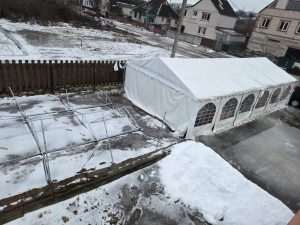 In de middag in Kramatorsk, in het kleine huiskerkje van 8×6 meter kwamen 90/100 mensen luisteren. Vervolgens op weg naar “huis” nog gestopt in Izium om de schade aan de evangelisatietent op te nemen. Van een helft heeft de constructie het begeven door zware sneeuwval. We bespreken hoe we dit willen repareren. In de avond zijn we terug in Merefa na een lange, intensieve dag. De Heere bewaarde ons, en gaf nog gelegenheid tot verkondiging van het evangelie in Woord en muziek en uitdeling van hulp. Zijn Naam zij geprezen.