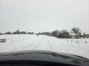 Na een paar dagen van dooi is er nu grauwe lucht, en het gaat sneeuwen. Net als 10 december 2025, als een bescherming op deze gevaarlijke route Charkov-Izium-Slovjansk. Totaal 195 km rijden. We passeren het in 2022 zo gehavende Izium, en vandaar tot bij Slovjansk is nu een traject van 50 km (!) overdekt met anti-drone netten.