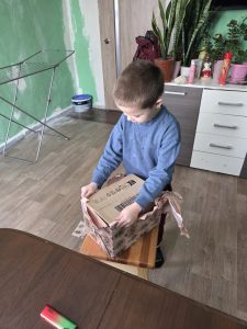 Afgelopen dagen in Smila: even vreugde brengen in een kinderleven omringd door leed. Papa is “verdwenen” na een raketaanval. Fijn om daar een kinder cadeaupakket te brengen, naast de andere hulp.