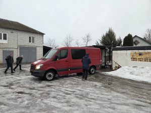 Startpunt van elke trip. Kerk in Merefa. Laden. We bidden samen. En gaan… in hoop van Gods onmisbare hulp en zegen.