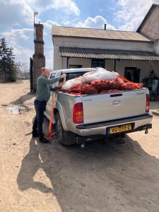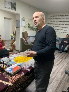 We nemen afscheid van de familie Mashnitski en bidden opnieuw om een veilige reis die ons verder richting de frontzone zal brengen. We rijden eerst richting Uman, en dan noordwaarts naar één van de locaties van de grote Nederlandse boer Kees Huizinga. Hier hebben we wat producten besteld om mee te nemen naar één van de distributielocaties in de frontzone. We laden de bak vol en vullen de dieseltank. Even later blijken de producten een gift te zijn van “de Leeuw van Kiev”, de stichting van Kees voor hulp in de Oekraïne. Intussen is de ,planning gewijzigd en is ons volgende doel Smila waar we uitgenodigd worden voor een lunch bij broeder Ilyshin om daarna door te rijden naar Dnipro in plaats van naar Merefa. Hier zijn Heimen van de Brink en zijn vriend Gerrit Vis inmiddels aangekomen met de lading hulpgoederen uit Nederland. De planning is nu om morgenochtend te lossen en dan door te rijden naar Tsuguev, waar het opvangtehuis is voor verslaafden. Hier hopen we Johan ook weer te ontmoeten. We brengen de nacht door bij broeder Stanislav, de coördinator voor deze regio in Dnipro.